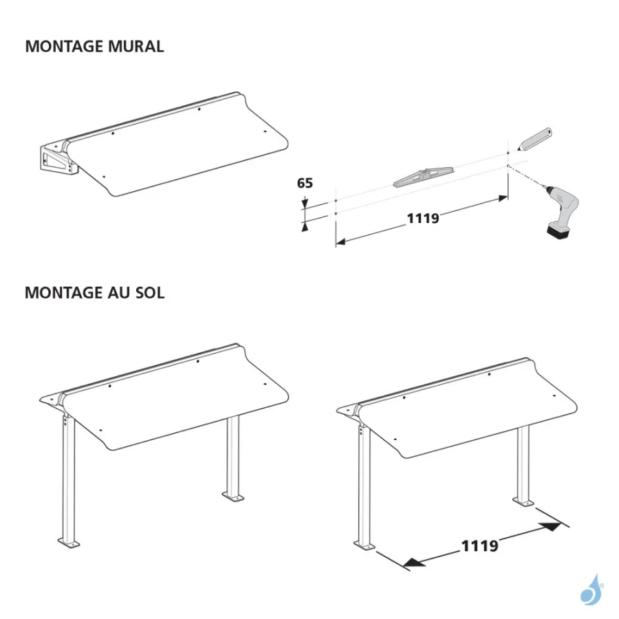 Fixation Murale lorsque l'appareil est positionné le long d'un mur (13,5 kg)