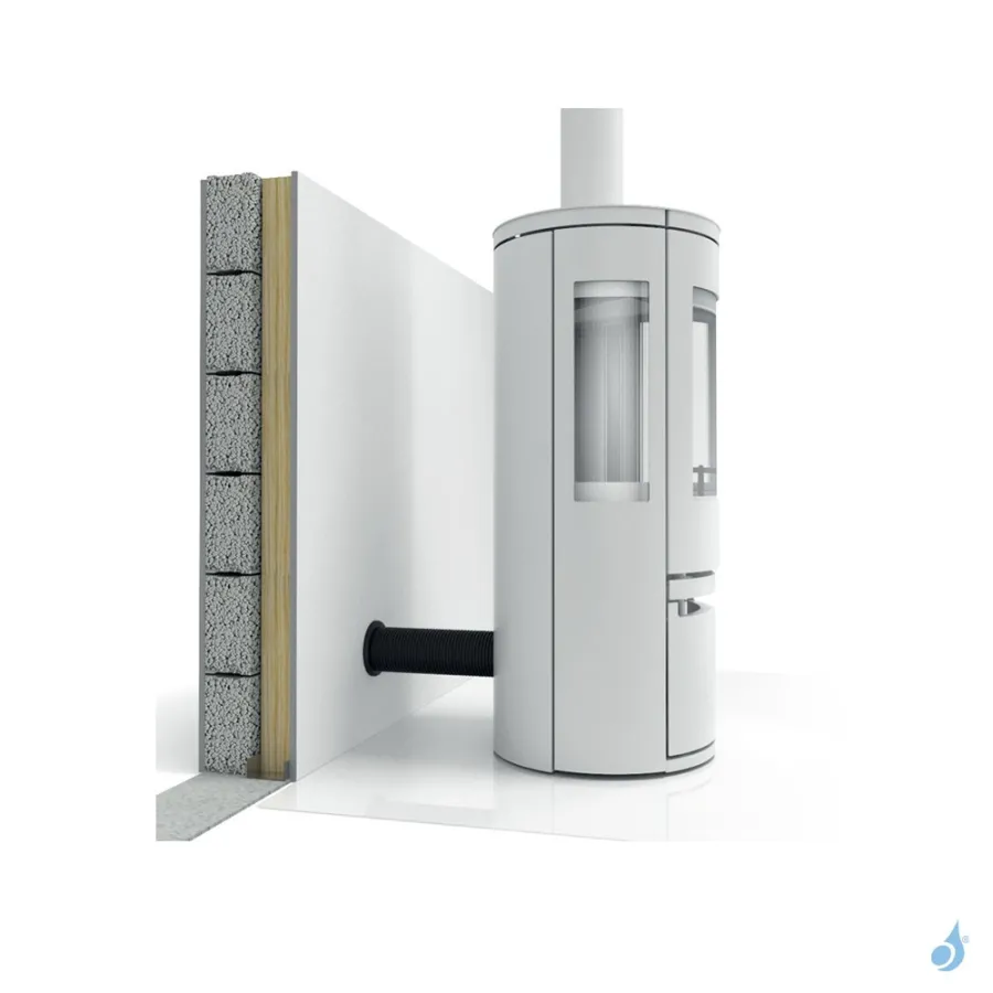 Répond aux exigences de la RT 2012 imposant un raccordement direct au poêle pour préserver l’étanchéité de la maison.