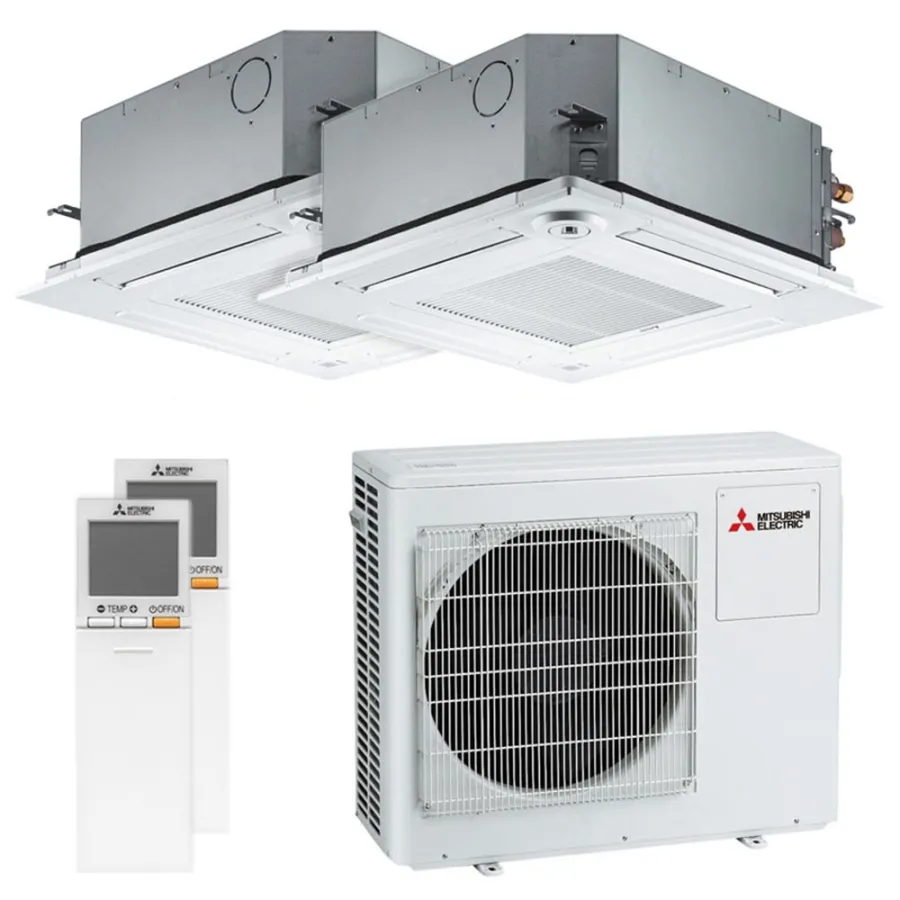 Climatiseur bi split Mitsubishi cassette SLZ-M MXZ-4F80VF4 8.0kW tailles 35 + 50 SLZ-M35FA2 + SLZ-M50FA2 4 voies 600x600