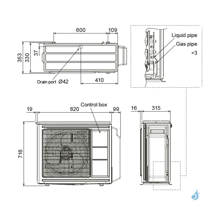 Dim. Unité Ext. HxLxP : 716 x 820 x 315 mm