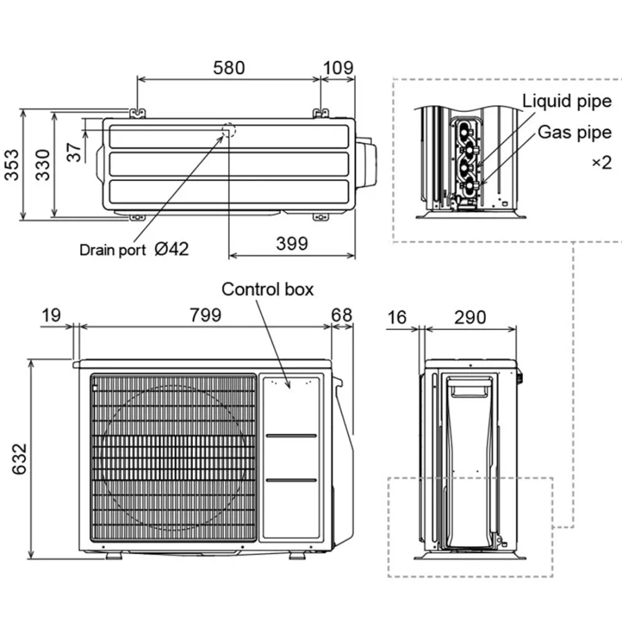 Dim. Unité Ext. HxLxP : 632 x 799 x 290 mm