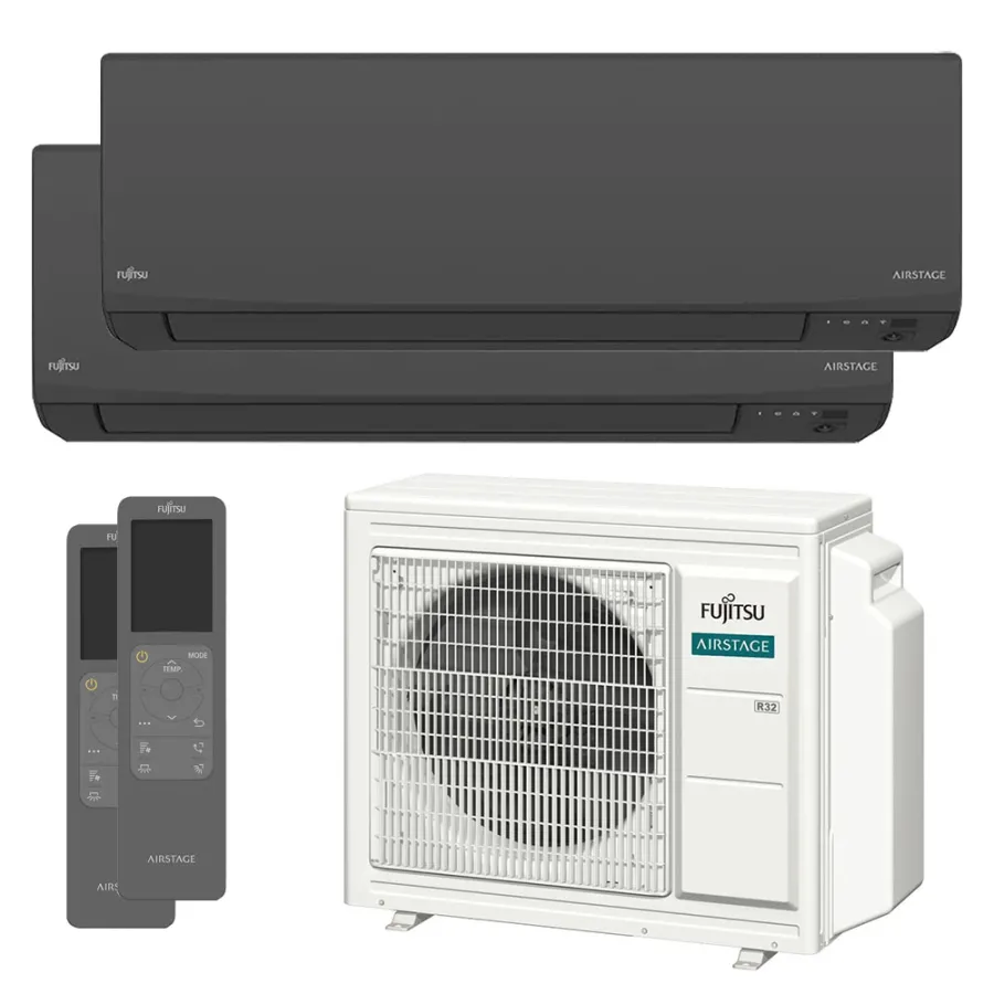 Climatisation bi split FUJITSU Mural KJ Noir AOEG24KBCA3 6.8kW tailles 20 + 42 WiFi de série ASEH07KJCALB + ASEH14KJCALB