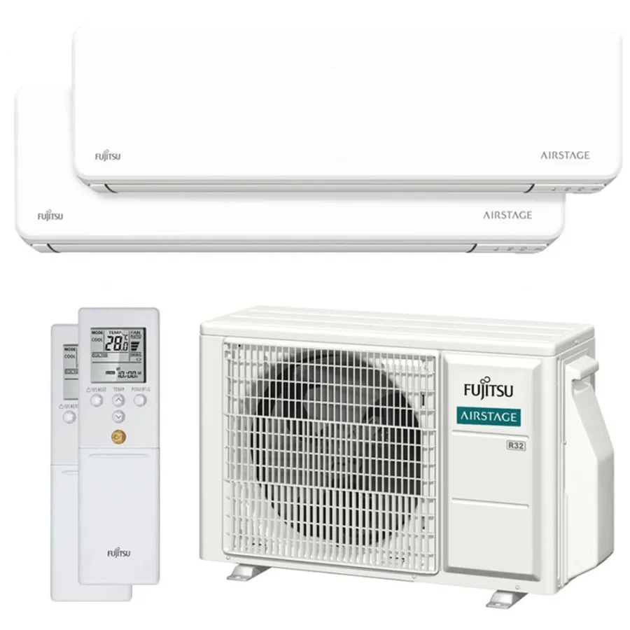 Climatiseur bi split FUJITSU Mural KMCG AOEG14KBCA2 4kW tailles 25 + 25 WiFi de série ASEH09KMCG + ASEH09KMCG
