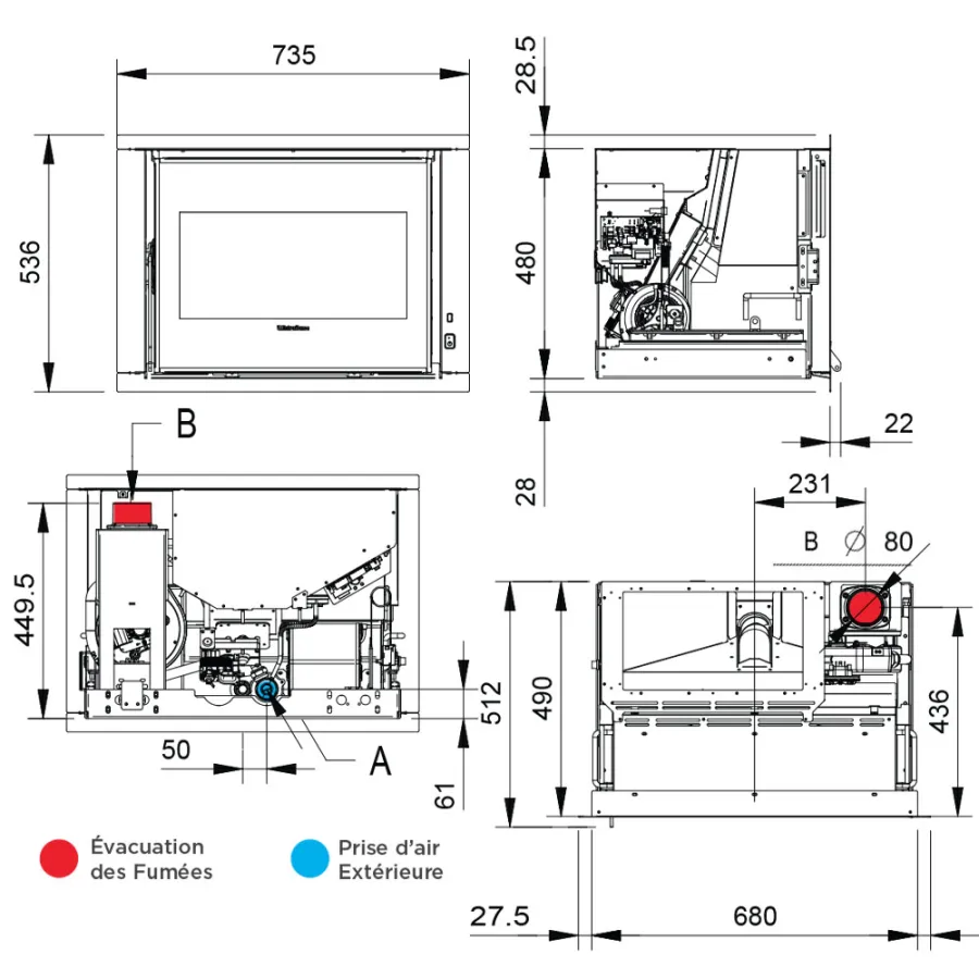 Ø évacuation fumée : 80 mm S