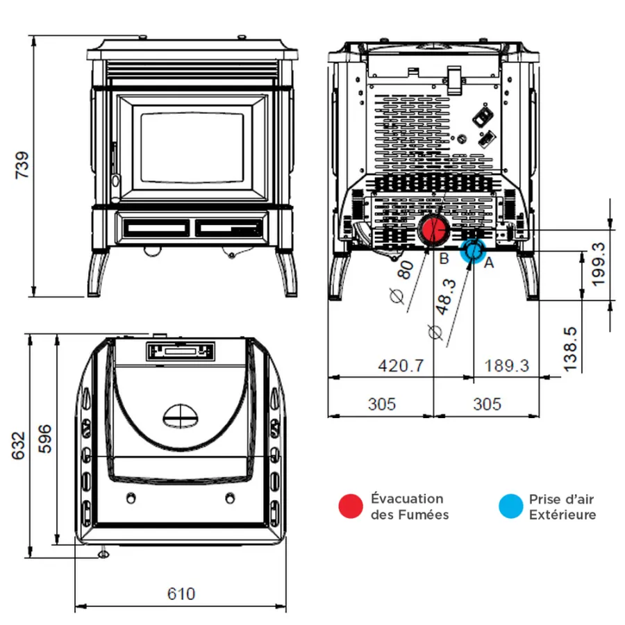 Ø évacuation fumée : 80 mm P