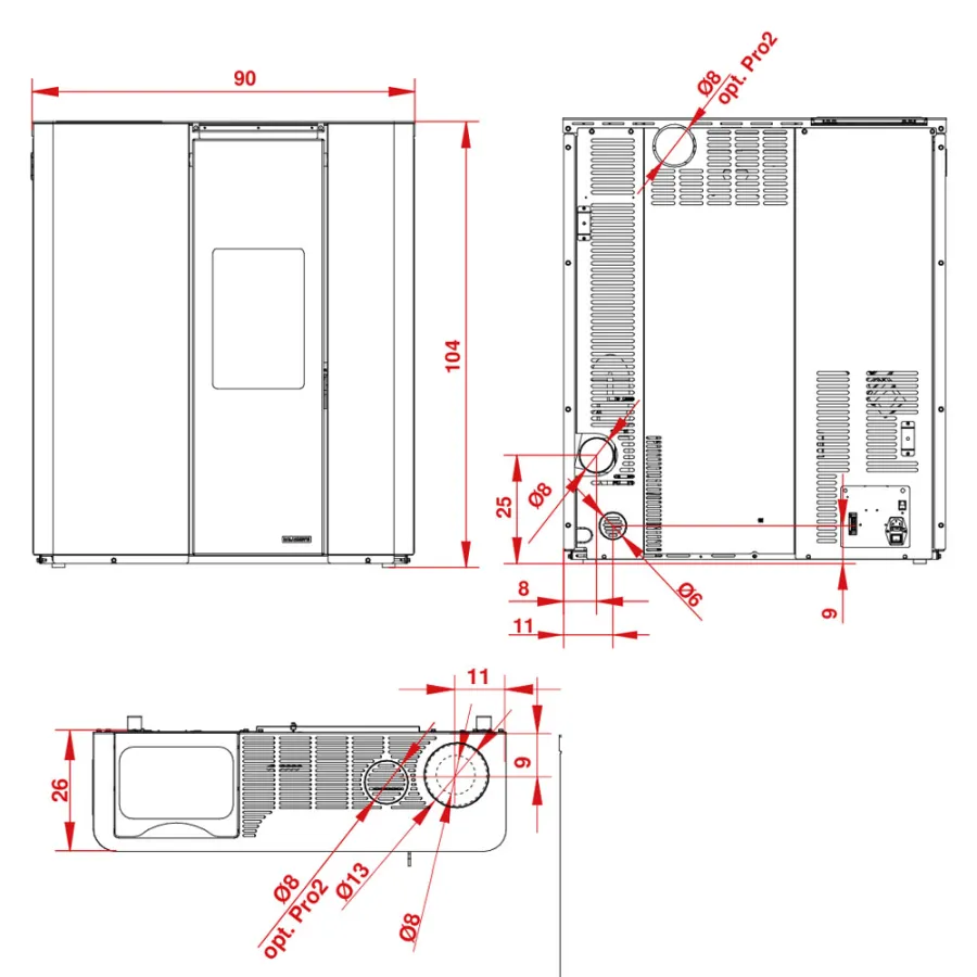Poêle à granulés étanche Palazzetti Scarlet TC 6 US Puissance 6.1kW Sortie Fumée Supérieure