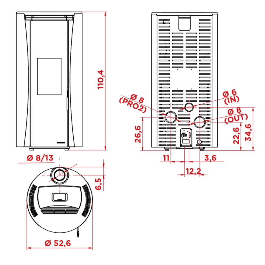 Poêle à granulés étanche Palazzetti Vivi TC 9 US Puissance 9kW Sortie Fumée Coaxiale Ø8/13cm