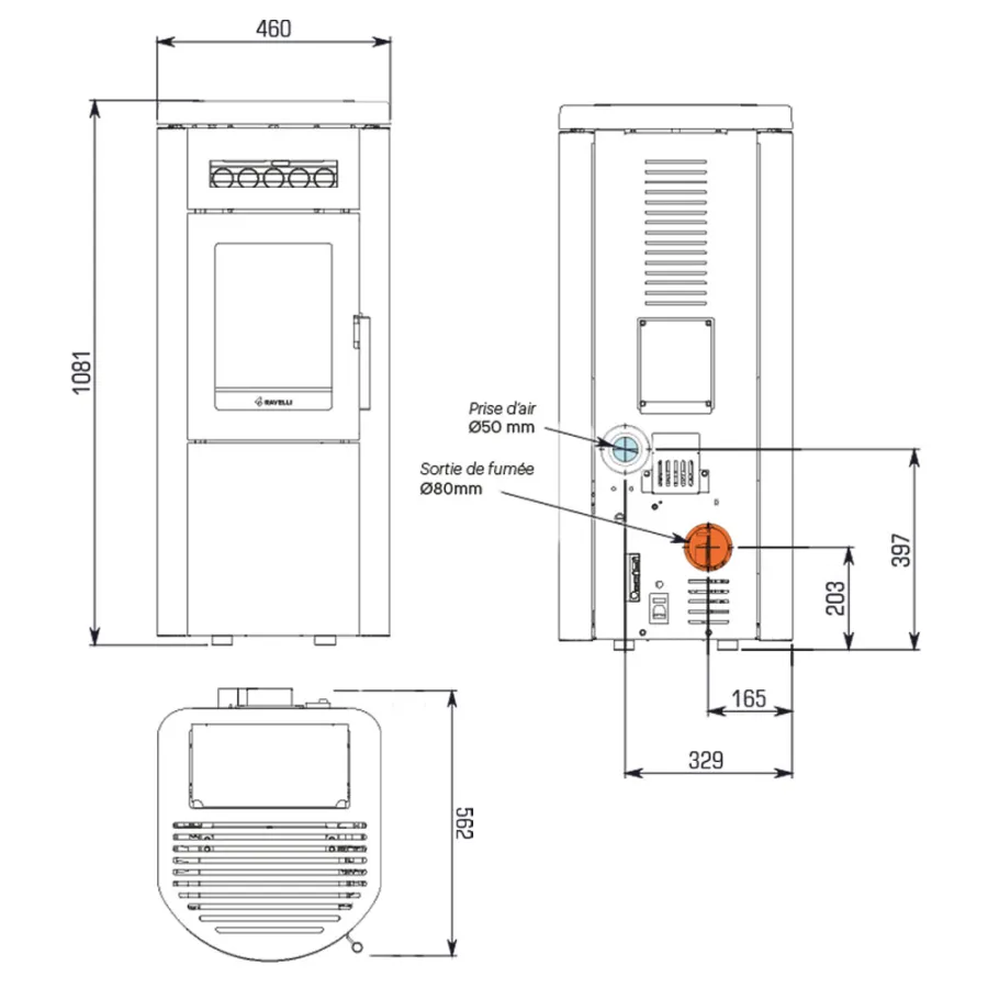 Sortie fumée Ø80 mm, Postérieure