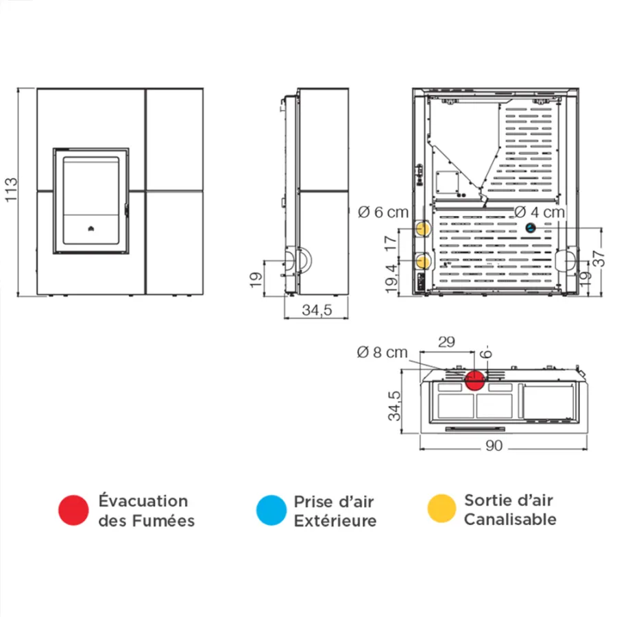 Ø évacuation fumée : 8 cm