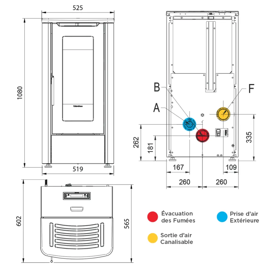 Ø évacuation fumée : 80 mm P