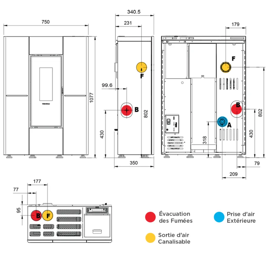 Ø évacuation fumée : 80 mm P/S/Lat.G