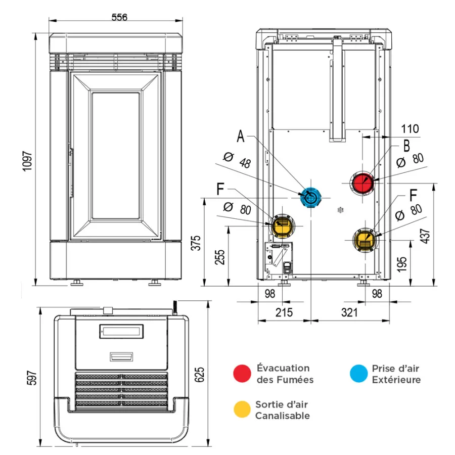 Dimensions L x H x P : 556 x 1097 x 597 mm