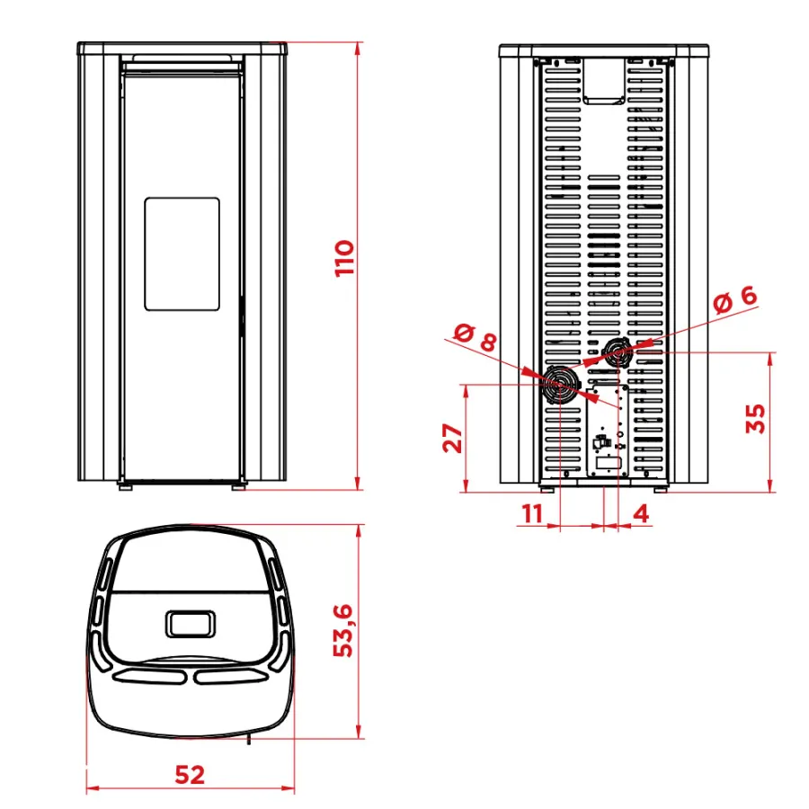 Poêle à granulés étanche Palazzetti Theo TC 9 Puissance 9kW Sortie Fumée Postérieure