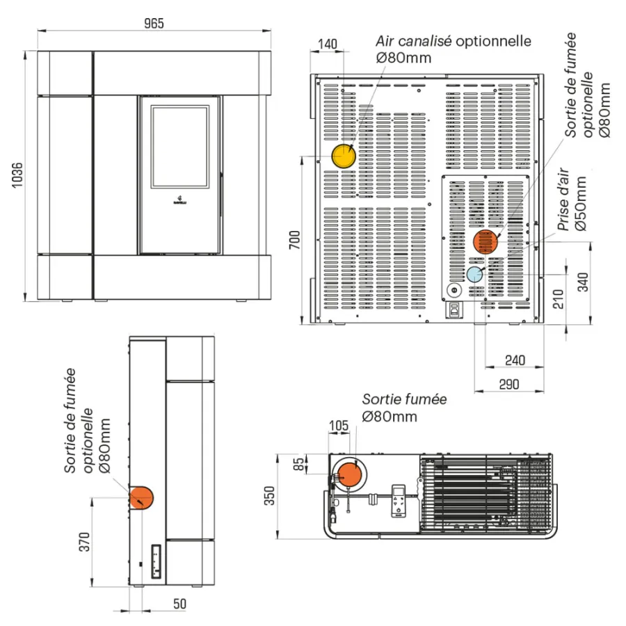 Sortie fumée Ø80 mm, supérieure