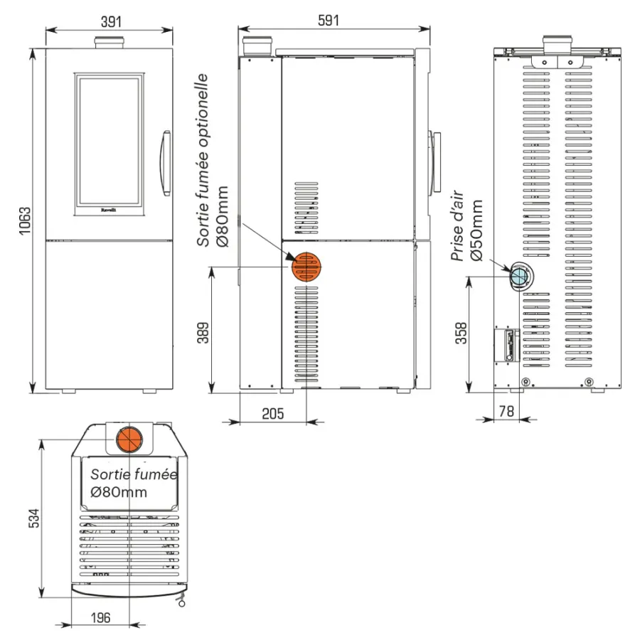 Poêle à granulés étanche Ravelli Alfa S Puissance 7kW Sortie Fumée Supérieure