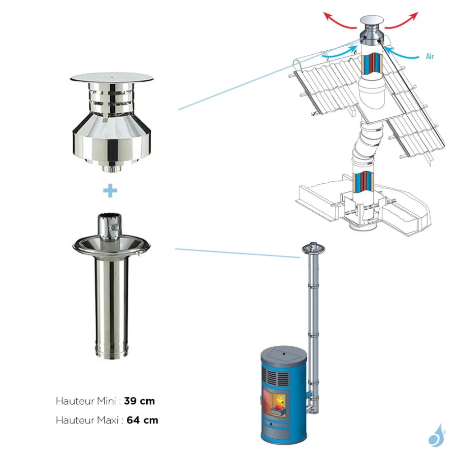 Permet l’utilisation du conduit de cheminée pour gérer l’air comburant et l’évacuation des fumées.