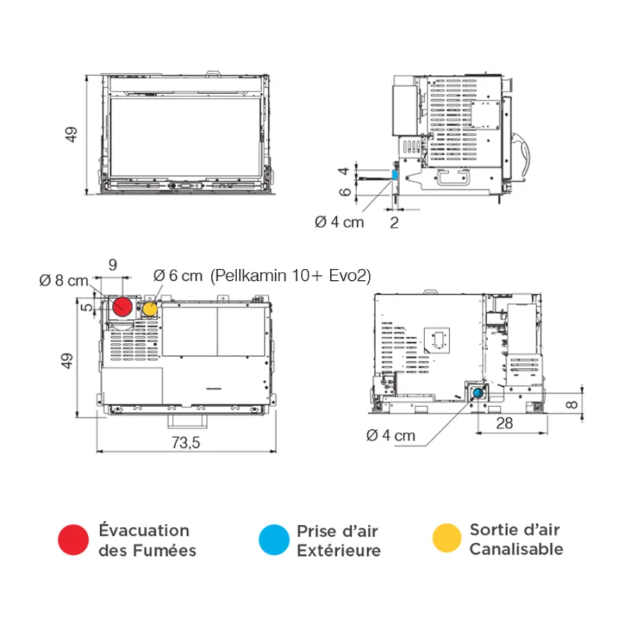 Ø évacuation fumée : 8 cm
