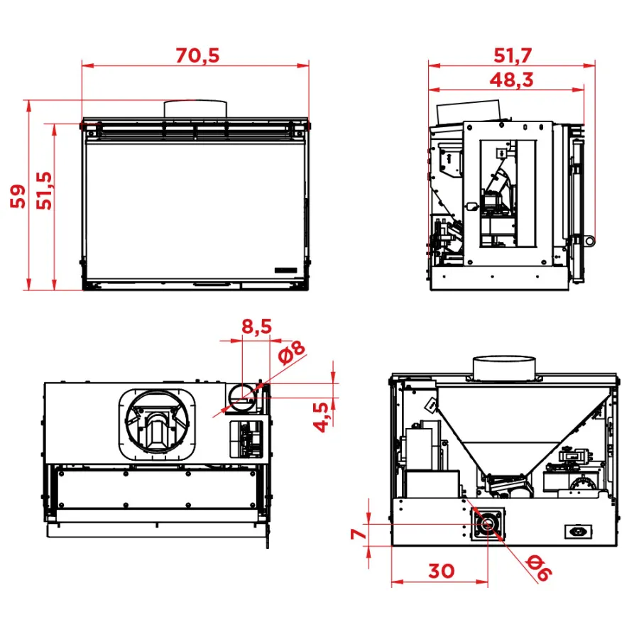 Insert à granulés Palazzetti Ecofire A70S Puissance 9kW Sortie Fumée Supérieure