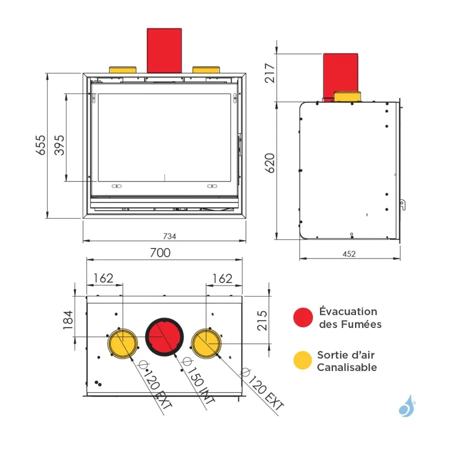 Sortie fumées : Sup. Ø150 mm