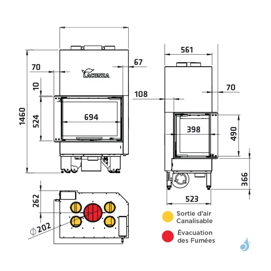Cheminée à bois Lacunza Izaro 80 CLI/CLD CV Puissance 12.5kW Avec Ventilateur Sortie Fumée Ø20 cm