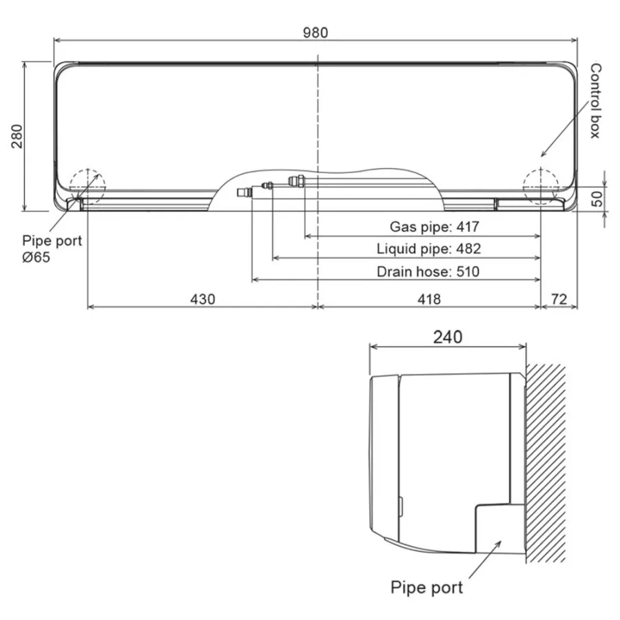 Dim. U.I HxLxP : 280 x 980 x 240 mm
