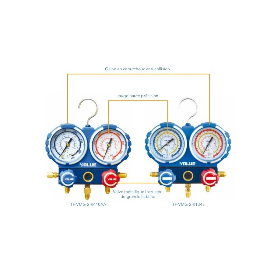 Coffret manomètre R407C - R410A - R32 -R134A + flexibles à vanne