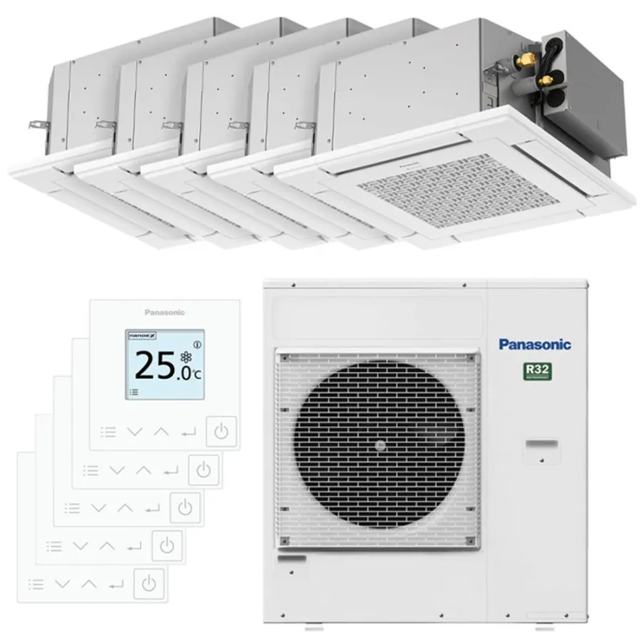 Penta split PANASONIC Cassette PY3 CU-5Z90TBE 9kW tailles 20 + 20 + 25 + 25 + 35 S-M20PY3E (x2) + S-25PY3E (x2) + S-35PY3E