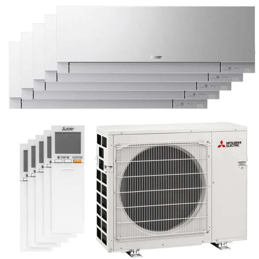 Penta split MSZ-EF Argent MXZ-5F102VF2 10kW tailles 25 + 25 + 25 + 25 + 35 MSZ-EF25VGKS (x4) + MSZ-EF35VGKS Mural Design WiFi