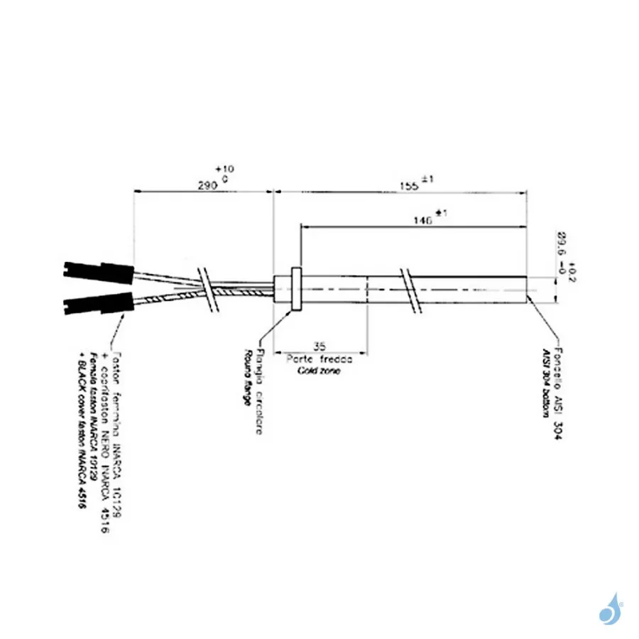 Bougie d'allumage avec bride 250W Ø9.5mm Longueur 153mm Ref 14701034
