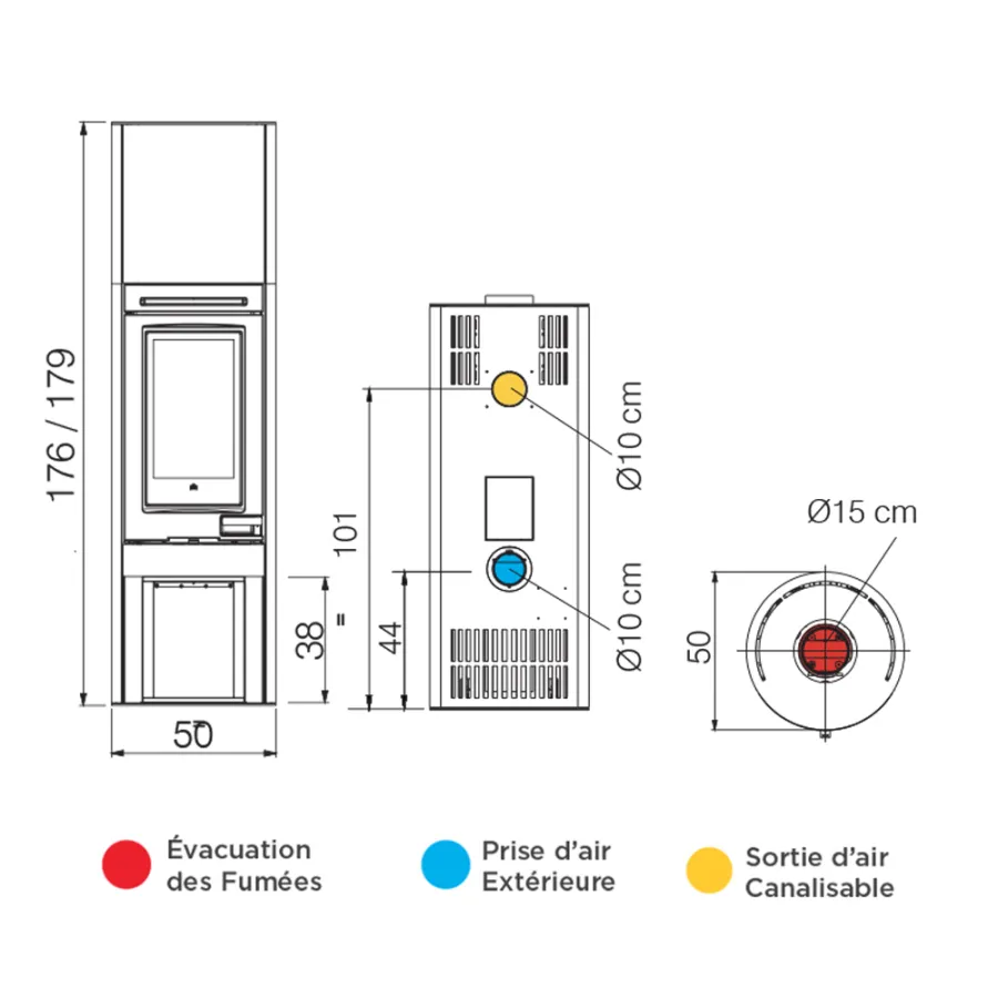 Poêle à bois EDILKAMIN Tally Evo2 série S Puissance 8.2kW Sortie Fumée Supérieure Ø15 cm