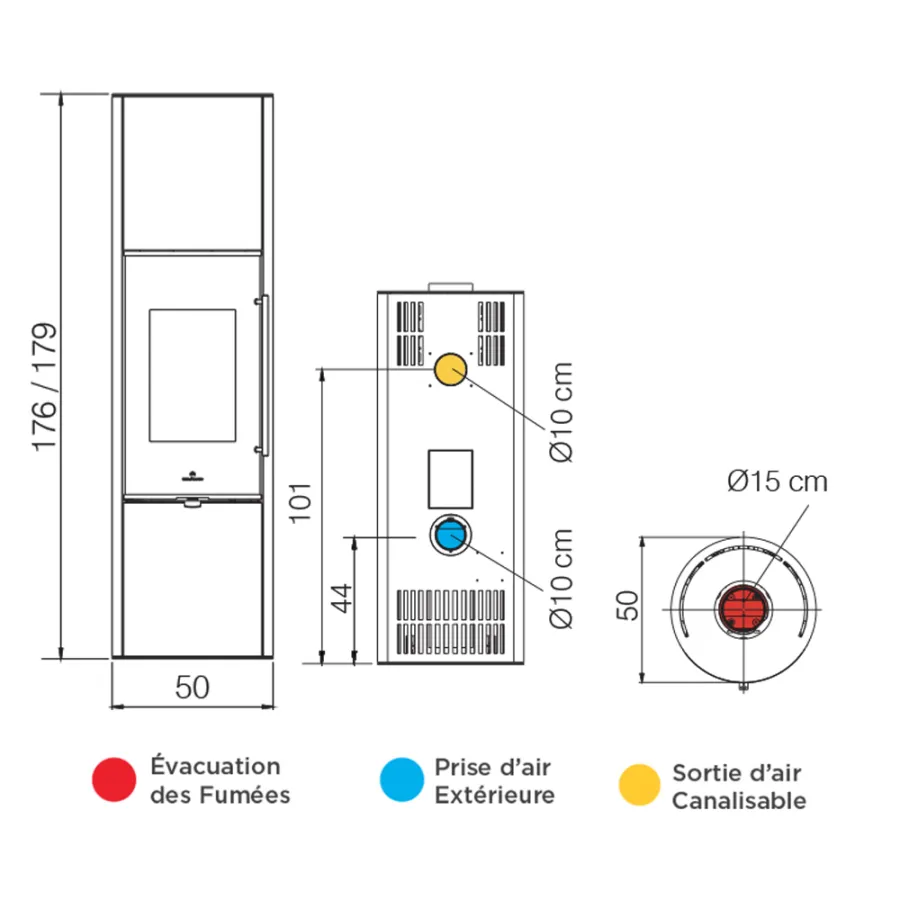 Sortie fumée Ø15 cm, vers le haut. (Femelle)