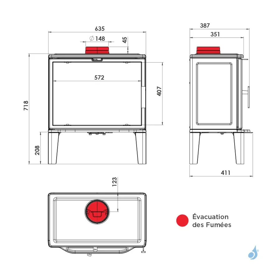 Poêle à bois Lacunza Biarritz Puissance 9kW Structure Fonte Sortie Fumée Supérieure Ø15 cm