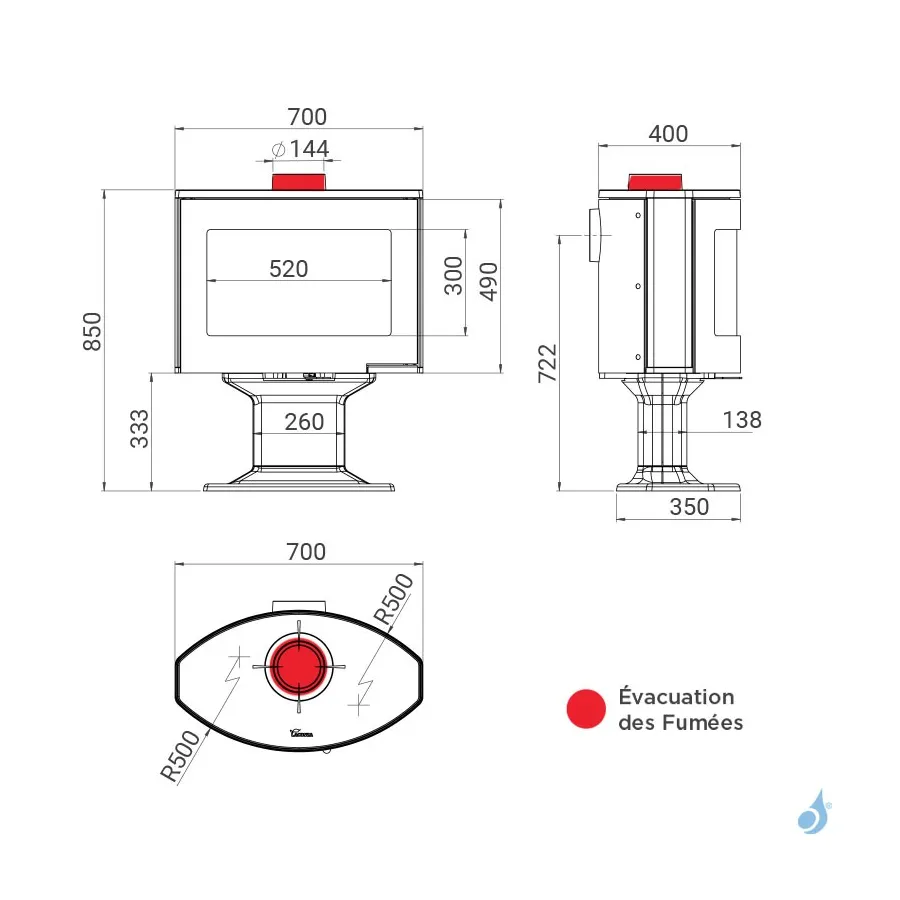 Sortie des fumées : Ø 150 mm