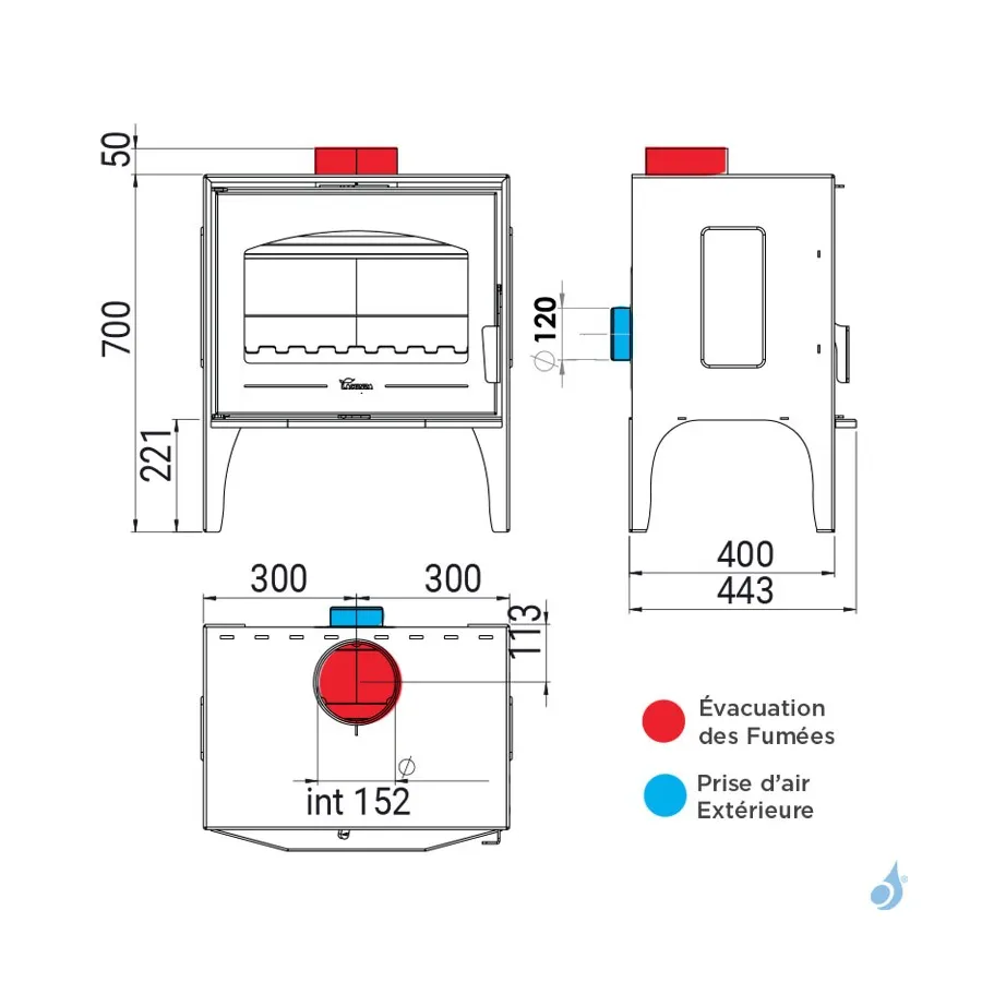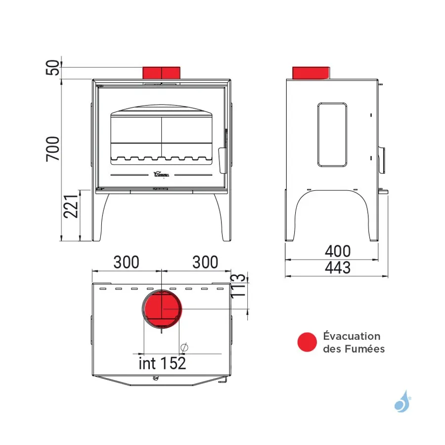Sortie des fumées : Ø 150 mm