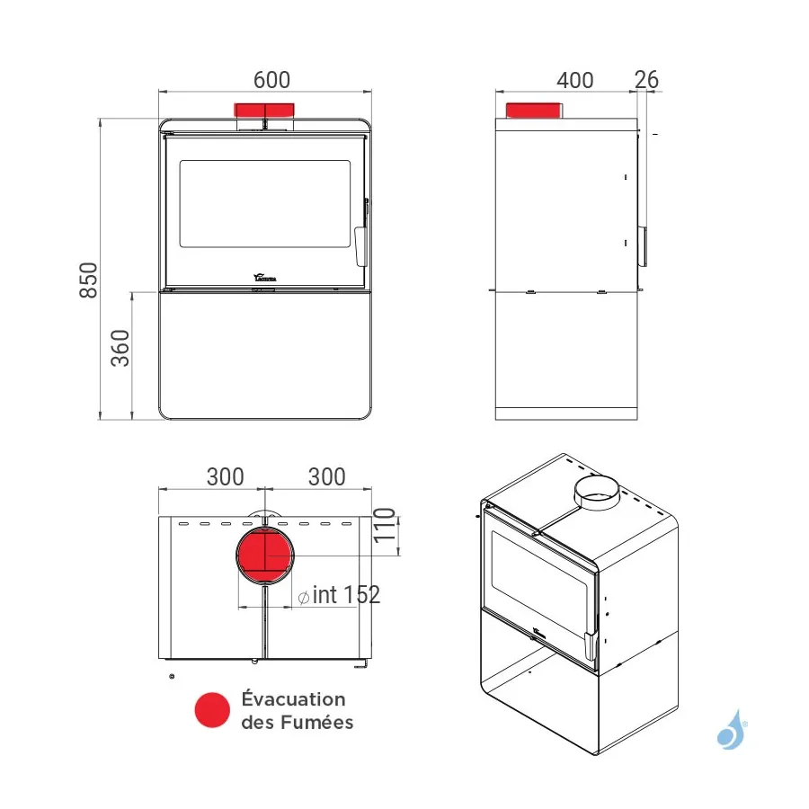 Sortie des fumées : Ø 150 mm