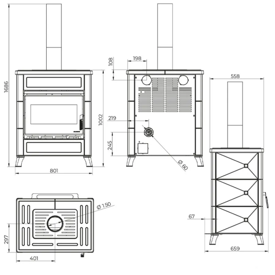 Poêle à bois Palazzetti Elsa New Puissance 9kW Sortie Fumée Supérieure