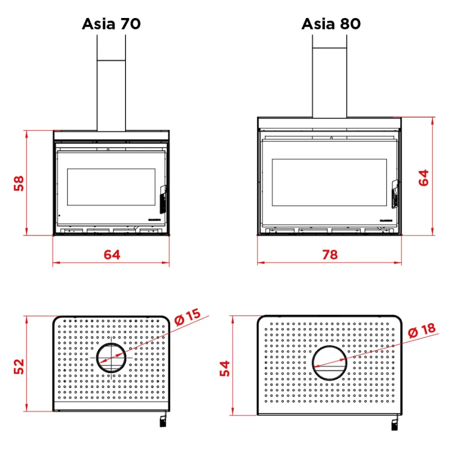 Poêle à bois Palazzetti Asia 80 Puissance 12.4kW Sortie Fumée Supérieure