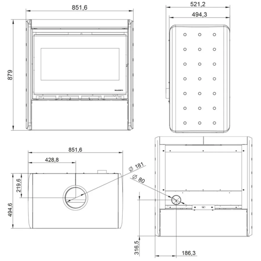 Poêle à bois Palazzetti Sahara 80 Puissance 12.4kW Sortie Fumée Supérieure