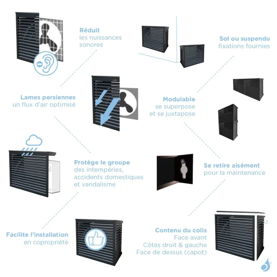 Cache climatisation modèle double latéral en Alu RAL 1015 Ivoire Clair