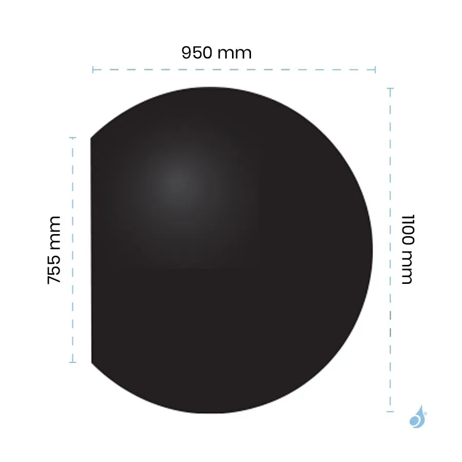 Plaque de sol Acier Noir ronde 1 bord droit 1100x950 bord 755 mm pour poêle à bois ou granulés