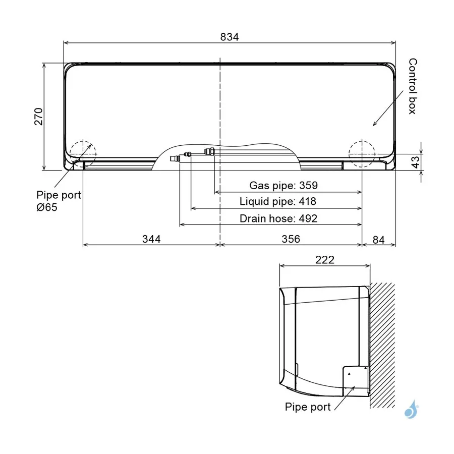 Dim. Unité Int. HxLxP : 270 x 834 x 222 mm