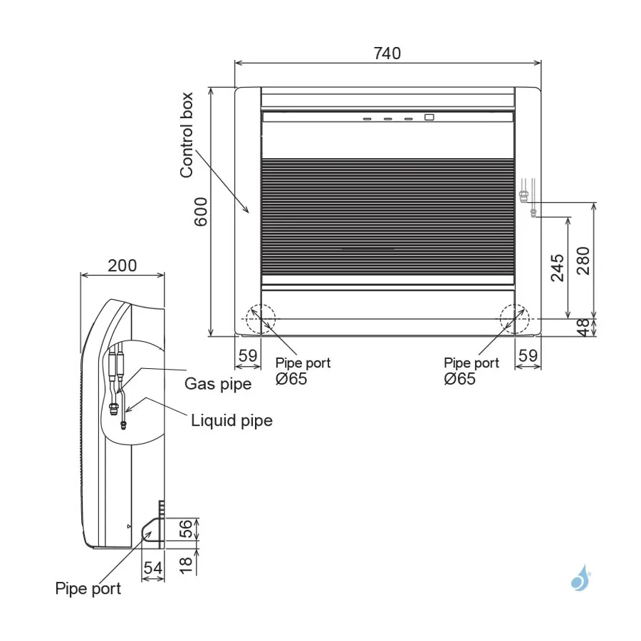 Dim. Unité Ext. HxLxP : 716 x 820 x 315 mm
