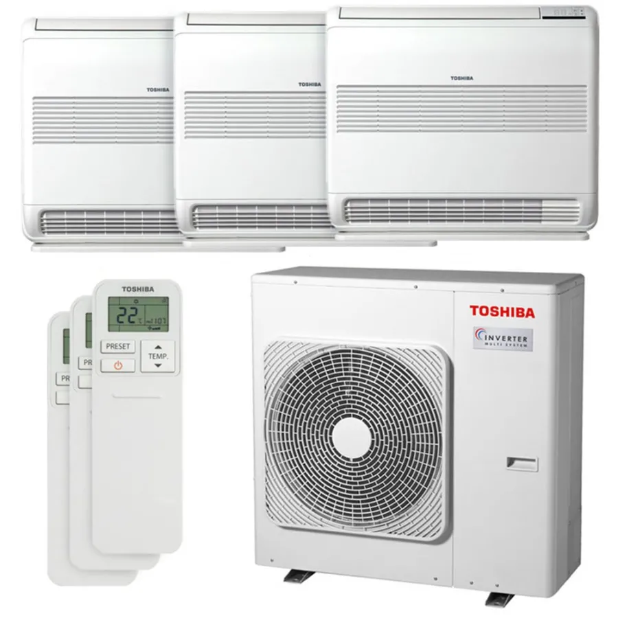 Climatiseur tri split Toshiba console RAS-3M26G3AVG-E 7.0kW Tailles 25 + 35 + 35 RAS-B10J2FVG-E + RAS-B13J2FVG-E (x2)
