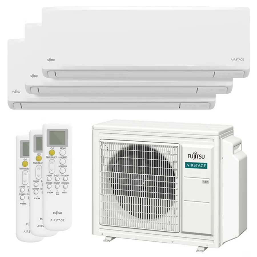 Climatiseur tri split FUJITSU Mural KNCA AOEG18KBCA3 5.4kW tailles 20 + 25 + 25 WiFi de série ASEH07KNCA + ASEH09KNCA (x2)