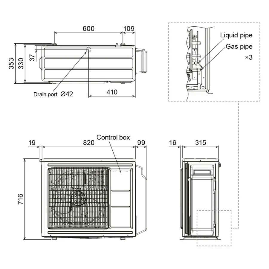 Dim. HxLxP : 716 x 820 x 315 mm
